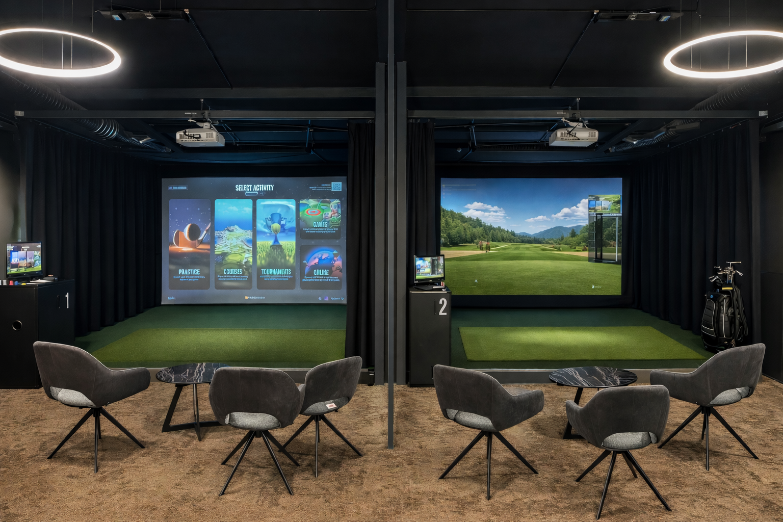 A private indoor golf studio offering tour-level data, structured coaching, and 24/7 access for golfers committed to improvement